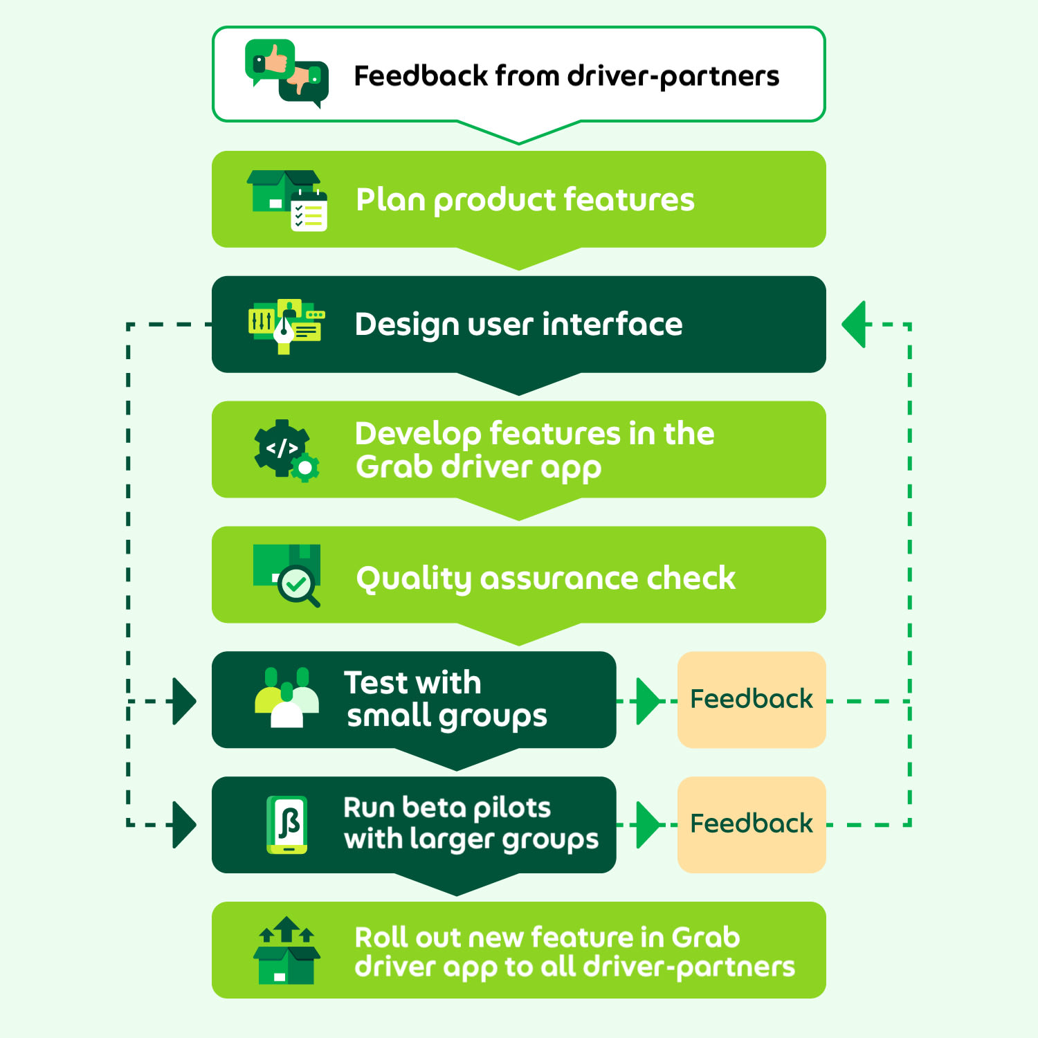 Thereafter, when the solution is made available to all driver-partners, the feedback loop remains active, with Grab’s tech and engineering teams on hand to further fine-tune and optimise the feature.