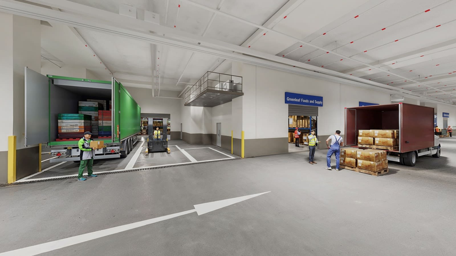All production units are served by dedicated 24-footer rigid-frame truck loading and unloading bays, while deluxe units have bigger lots to accommodate 40-footer container trucks. Heavy-duty vehicles can also access common loading bays on levels two and three, with service lifts connecting all floors to support smoother goods handling and workflow management.