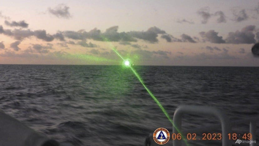 - The China Coast Guard in February pointing a “military-grade” laser at crew members of a Philippine Coast Guard ship
