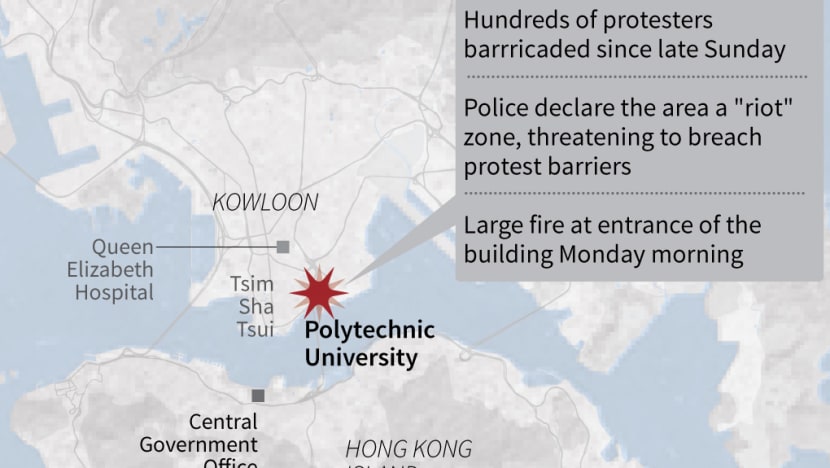 HONG KONG: Hong Kong police laid siege to a university on Monday (Nov 18), firing rubber bullets and tear gas to pin back anti-government protesters armed with petrol bombs and other homemade weapons from fleeing amid fears of a bloody crackdown.