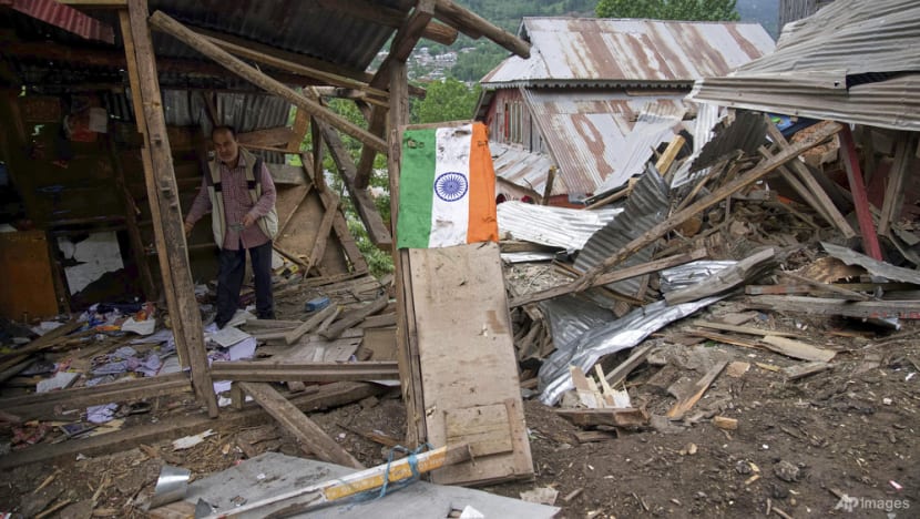 A local resident inspects his house that was damaged by Pakistani artillery shelling in Uri, about 100km from Srinagar, on May 9, 2025. (Photo: AFP/Tauseef Mustafa)