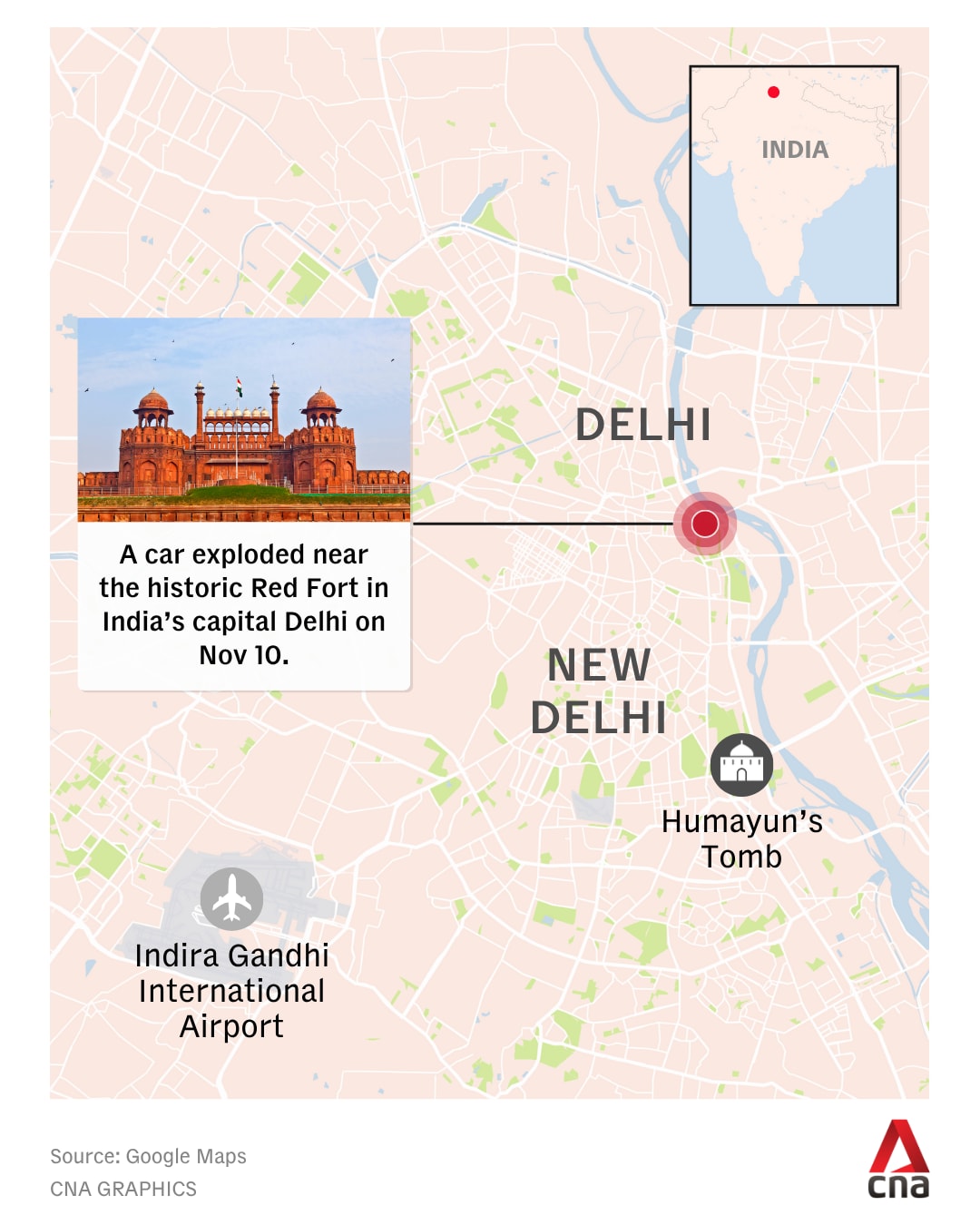 The explosion near Red Fort on Monday evening (Nov 10) killed at least eight people and injured 20.
