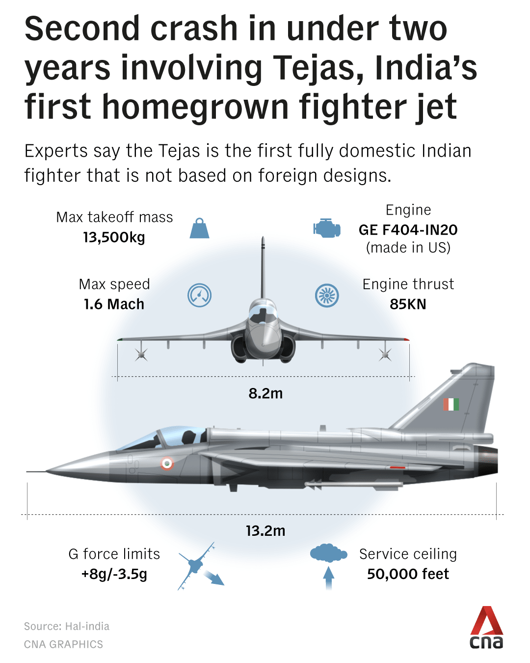 State-owned Hindustan Aeronautics manufactures the aircraft, which is powered by General Electric engines. Both companies have said they will support the investigation.