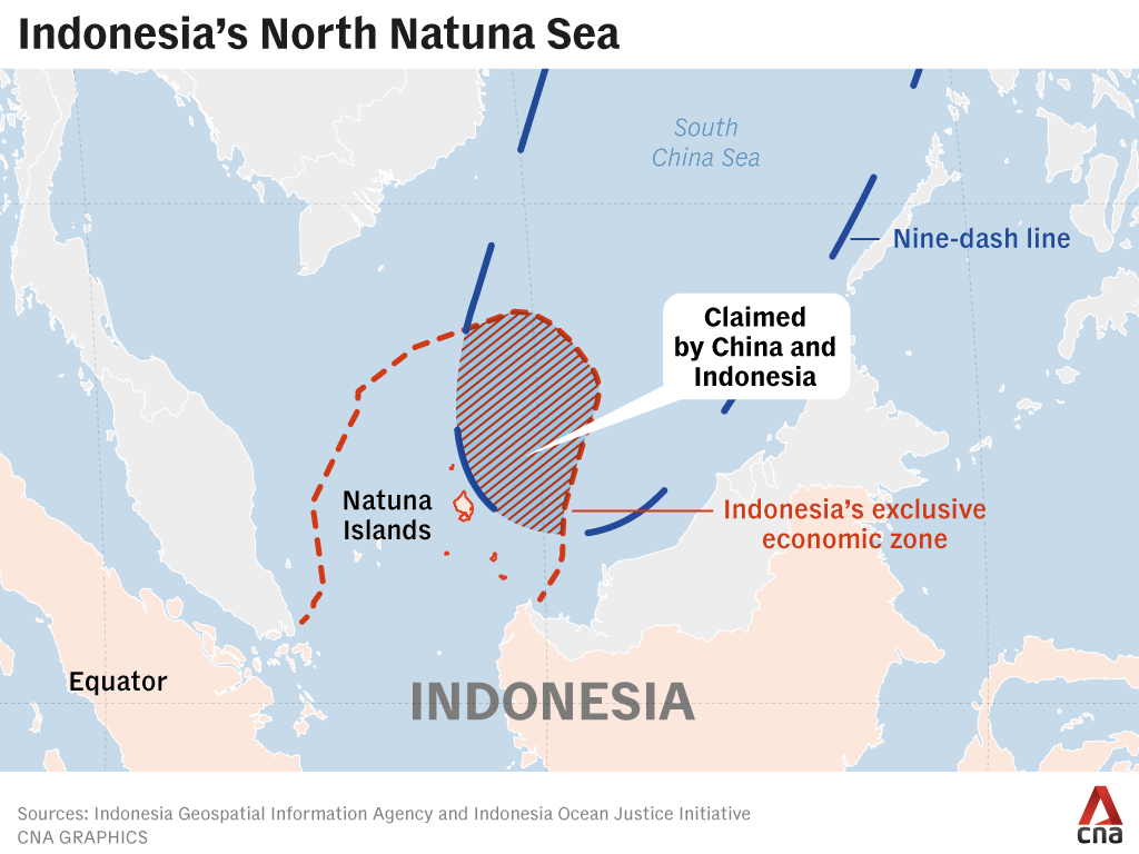 Beijing lays claim to much of the South China Sea, putting it at odds with several Southeast Asian states including Malaysia, Vietnam and the Philippines. Although Indonesia is not a formal claimant in the disputes, China’s so-called nine-dash line overlaps with parts of Indonesia’s exclusive economic zone near the Natuna islands.