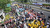 After the ceremony at the Parliament building, Mr Prabowo’s and Mr Gibran’s motorcade passed through Jakarta’s main thoroughfares as they made their way to the presidential palace.