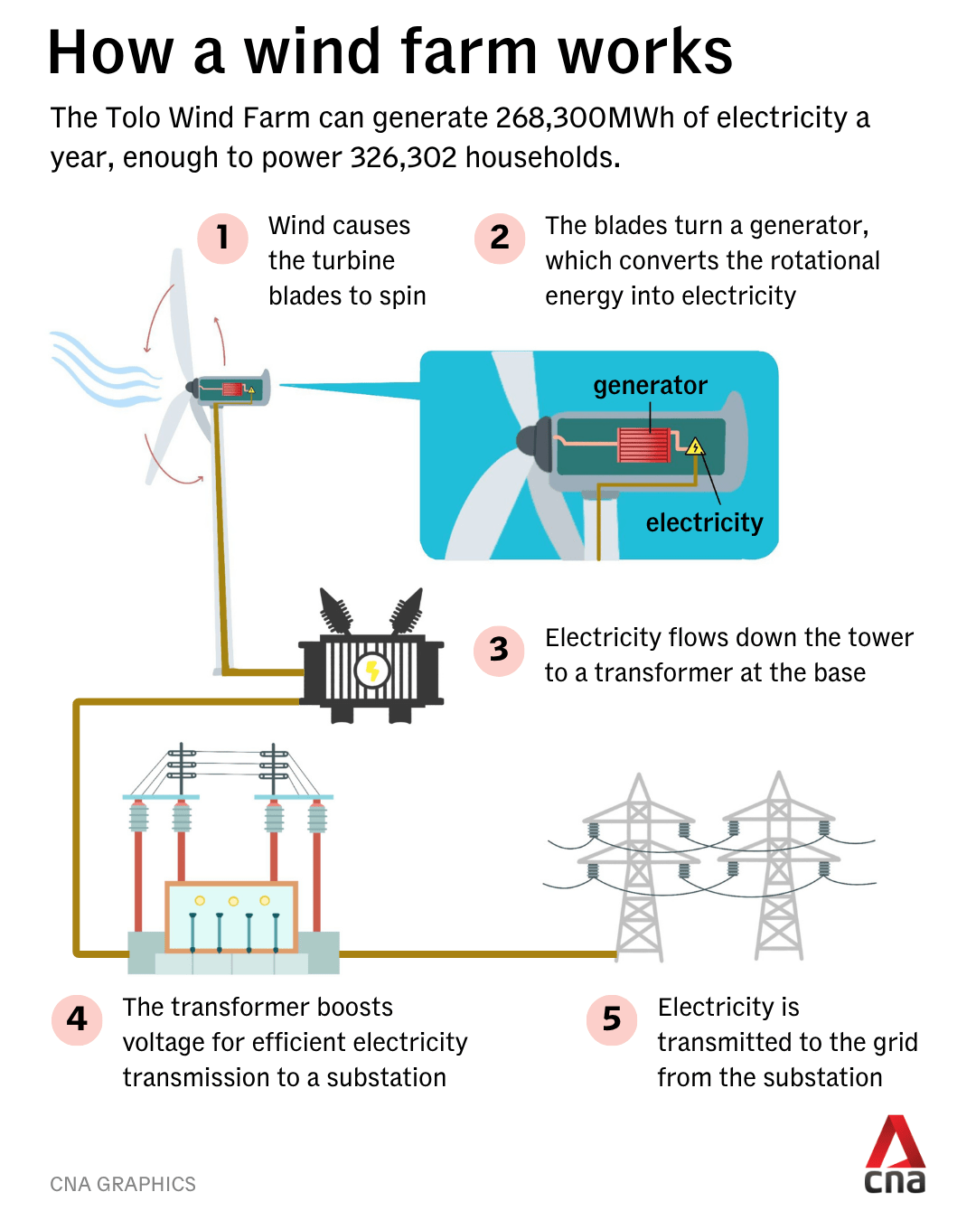 Its 20 giant turbines, spread across 60ha, generate around 72MW of clean electricity – enough to power about 320,000 households.