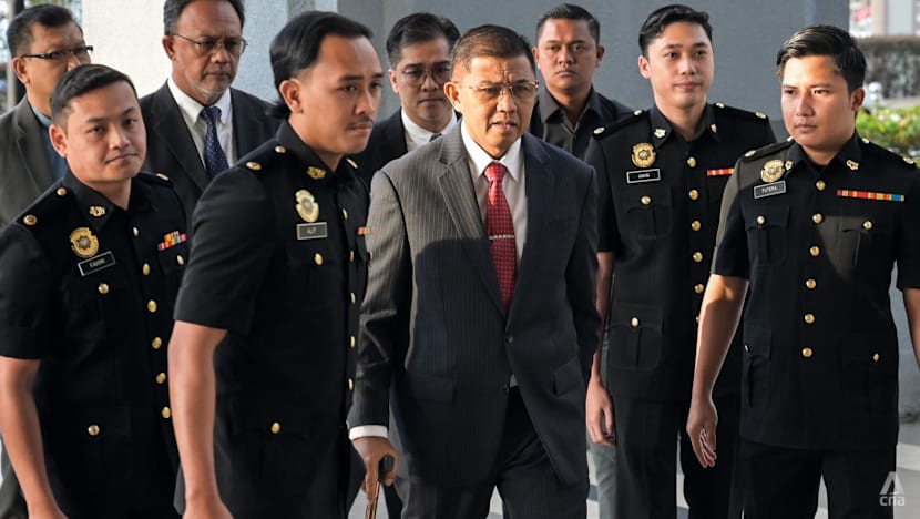 Malaysia's former armed forces chief Mohd Nizam Jaffar arrives at the Kuala Lumpur Courts Complex, escorted by Malaysian Anti-Corruption Commission (MACC) officers on Jan 23, 2026. (Photo: CNA/Fadza Ishak)