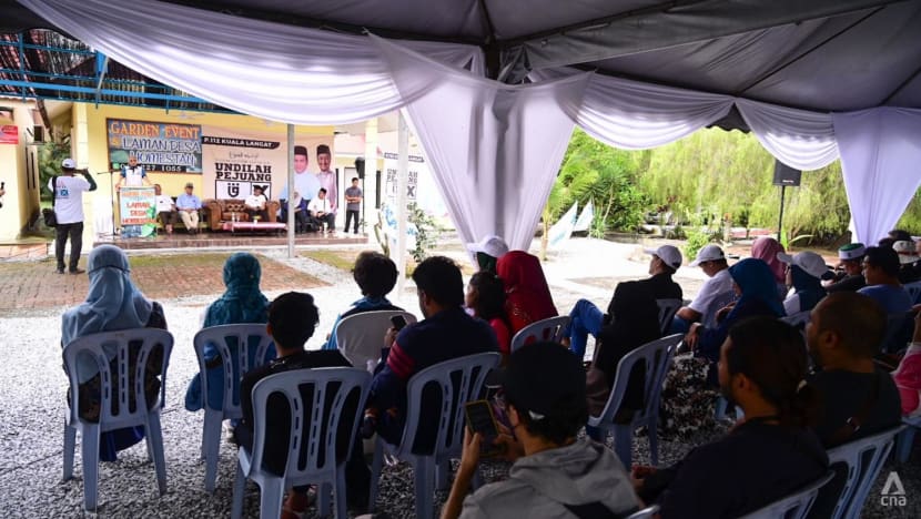 Dr Mahathir Mohamad speaking at a campaign event in Taman Sri Cempaka, a neighbourhood in central Melaka City on Nov 13, 2022. (Photo: CNA/Gaya Chandramohan)