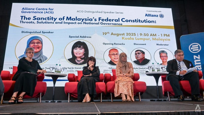 Former Chief Justice of Malaysia Tengku Maimun Tuan Mat speaking at a forum on the country's Federal Constitution in Kuala Lumpur on Aug 19, 2025. (Photo: CNA/Fadza Ishak)