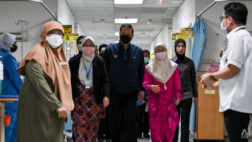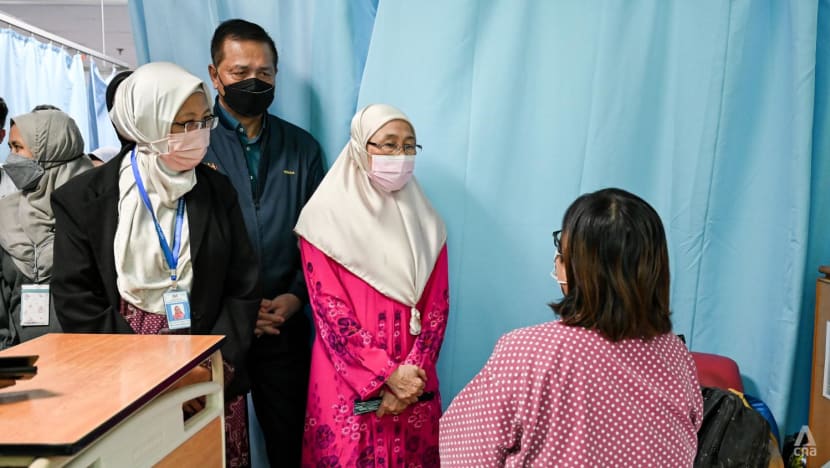 Wan Azizah Wan Ismail, wife of Malaysia's prime minister pays a visit to a survivor at Selayang Hospital in Selangor on Dec 17, 2022. (Photo: CNA/Fadza Ishak)
