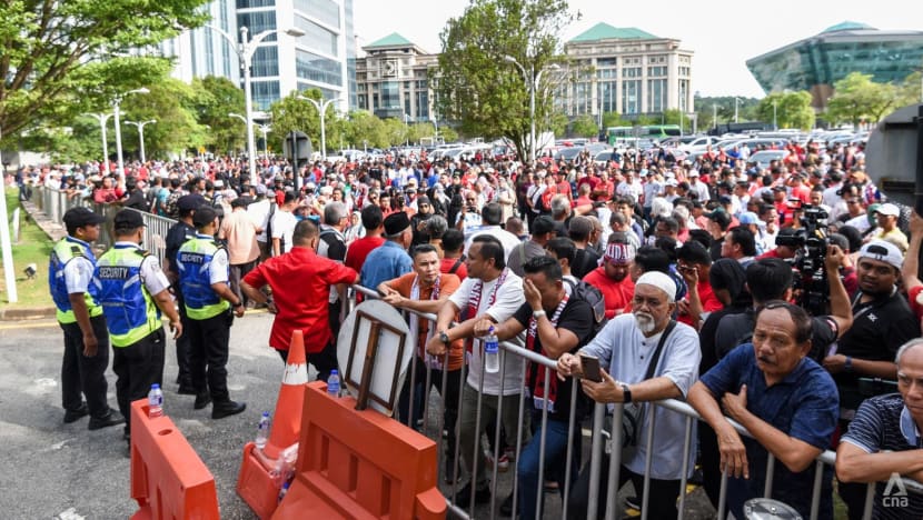 Outside the court on Monday, a crowd had gathered in solidarity with Najib despite warnings from police that permission for a rally had been denied and that the public was prohibited from attending it.