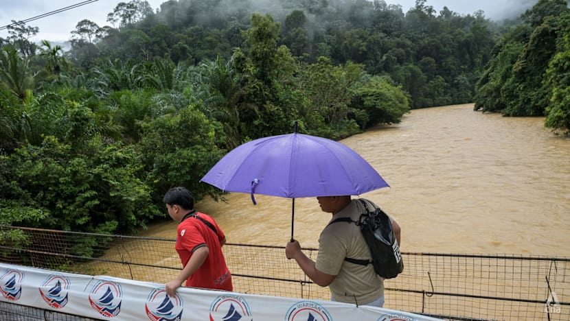 Voters in Papar crossing the suspension bridge to Kaiduan Primary School to cast their vote in the Sabah state election on Nov 29, 2025. (Photo: CNA/Fadza Ishak)