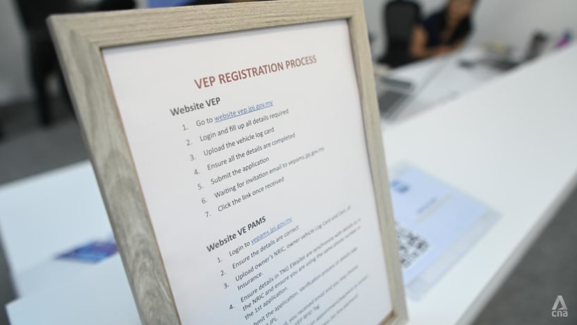 Singapore drivers rush to Malaysia’s VEP information counter in Woodlands industrial park to seek help