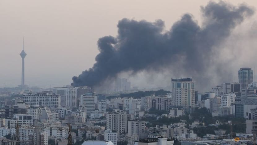 Smoke rises as a building stands damaged in the aftermath of Israeli strikes in Tehran, Iran on Jun 13, 2025. (Photo: Reuters/WANA (West Asia News Agency)/Majid Asgaripour)