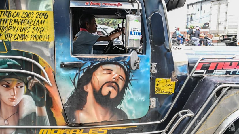 “You see it from the jeepney imagery, where there’s a graduation photo of a child or a baby photo next to Papa Jesus, next to Pokémon, next to Lord of the Rings, next to gaming monsters. So it’s really a mixed bag,” said Bru Sim, a graphic artist and the author of “Jeepney Biyaheng Langit”, a book documenting the religious imagery of jeepneys.