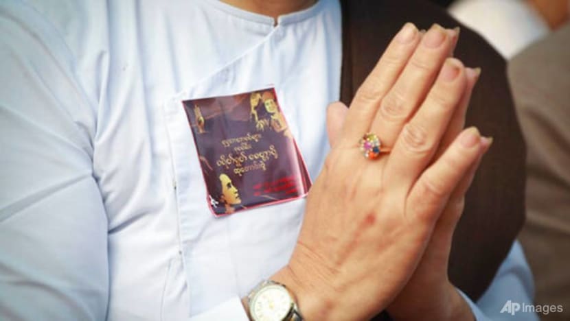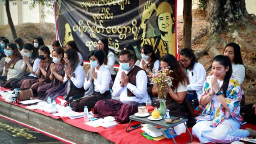 Buddhists pray outside Aung San Suu Kyi's residence in Yangon on Feb 26, 2021. (Photo: AP) Myanmar
