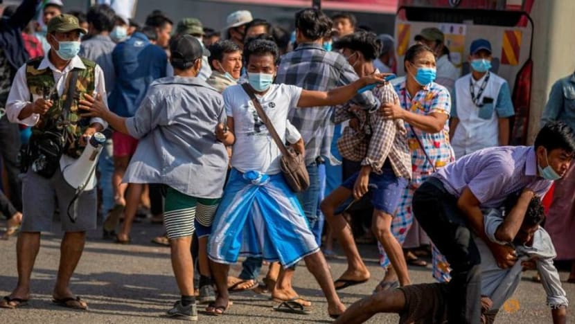 YANGON: Myanmar security forces cracked down on anti-coup protesters in the country's second-largest city on Friday (Feb 26), injuring at least three people, two of whom were shot in the chest by rubber bullets and another who suffered a wound on his leg.