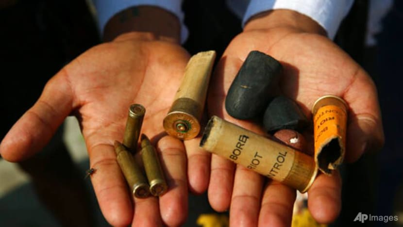 A protester show bullets, shotgun shells and rubber bullets used by security forces during a demonstration against the military coup in Mandalay, Myanmar, Feb 26, 2021. (Photo: AP)