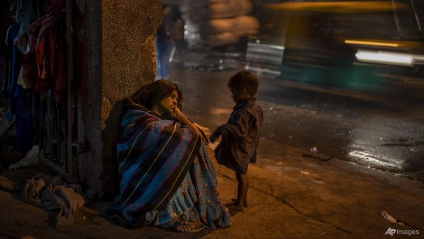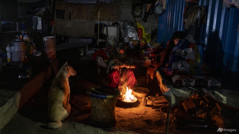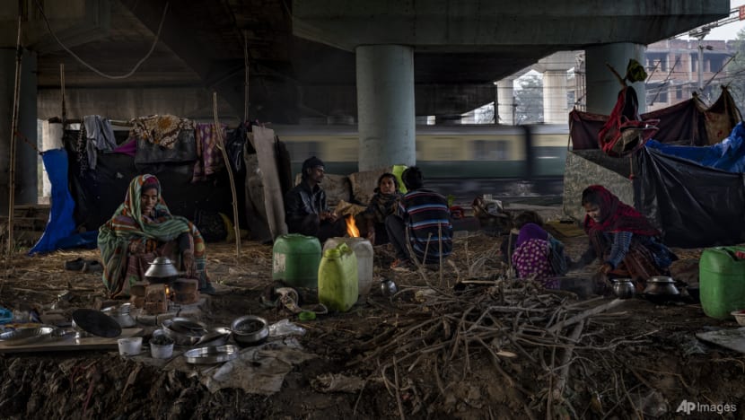 Homeless people sleep in the open under an overpass on a winter night in New Delhi on Dec 28, 2022. (Photo: AP/Altaf Qadri)