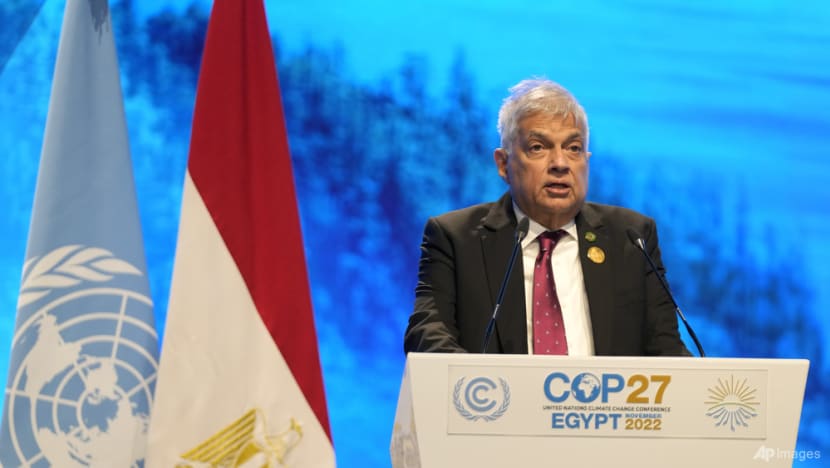 Sri Lankan President Ranil Wickremesinghe speaks at the COP27 UN Climate Summit, on Tuesday, Nov 8, 2022, in Sharm el-Sheikh, Egypt. (File Photo: AP Photo/Peter Dejong)