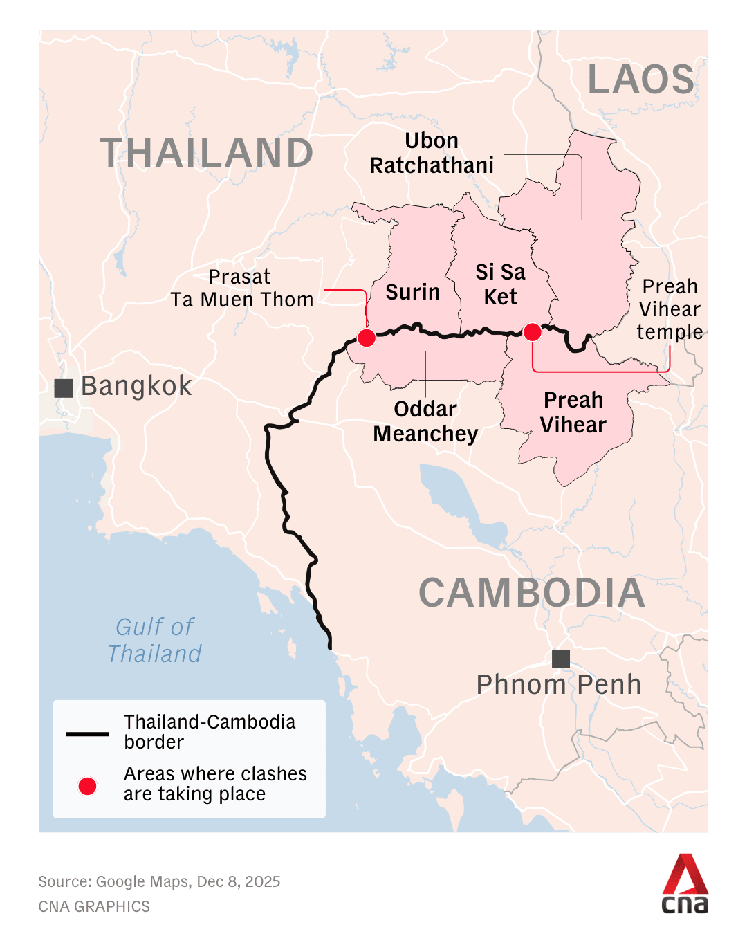 BANGKOK: Thailand said it was taking action to expel Cambodian forces from its territory on Tuesday (Dec 9), as renewed fighting between the two Southeast Asian neighbours spread along their disputed border.