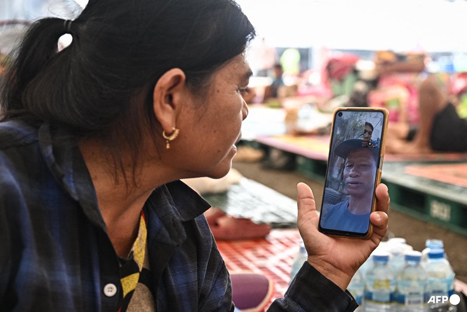 At an evacuation shelter in Buriram's Chang International Circuit race course, around 70km from the village, Narongchai's wife, Uthai Putthet, sits on a straw mat anxiously awaiting updates.