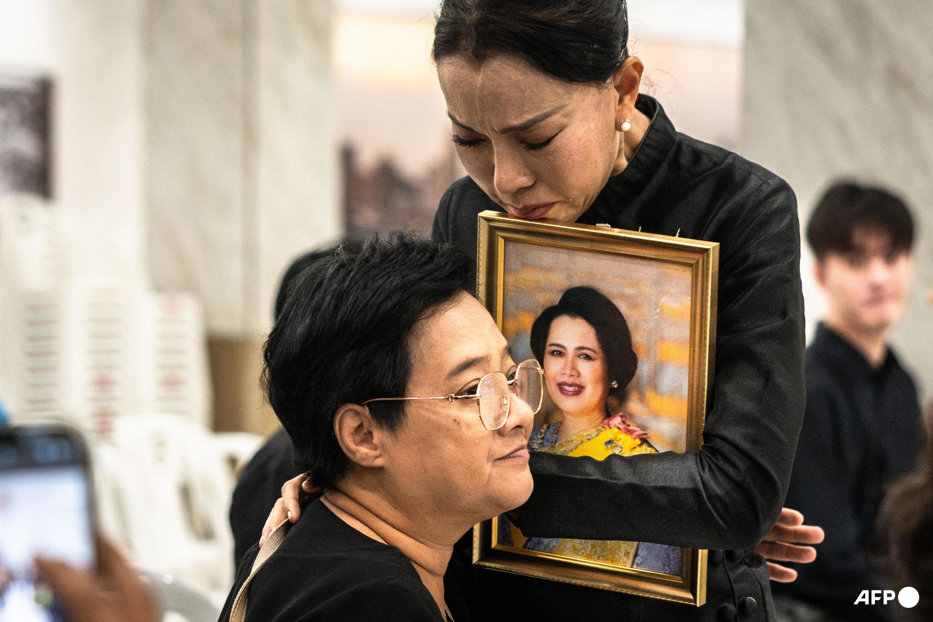 Hundreds of black-clad mourners also filed into the Grand Palace from Sunday morning, even before Sirikit's remains arrived, paying tribute to ornate portraits depicting her.