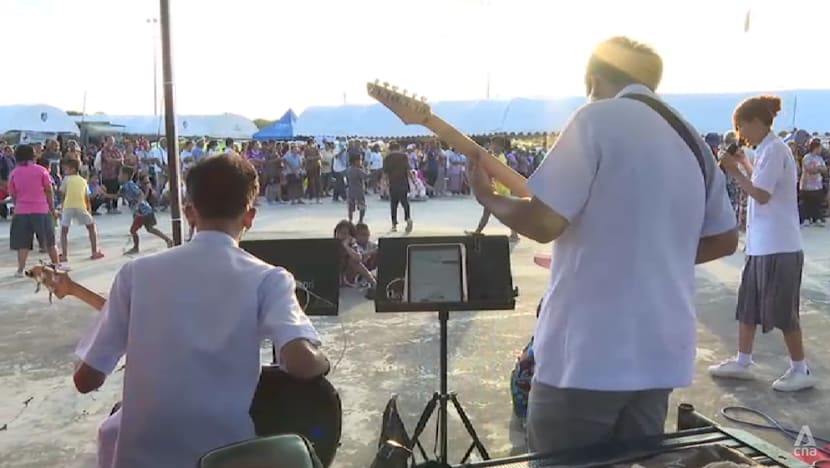 The music is loud, but the mood is sombre. No one in this temporary shelter in Thailand’s Buriram province is here by choice.