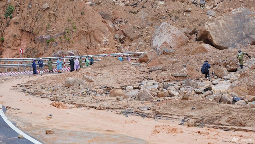 A passenger bus is crushed by a fatal landslide on Khanh Le pass in Khanh Hoa province, Vietnam, Nov 17, 2025. (Photo: AP/VNExpress/Minh Bang)