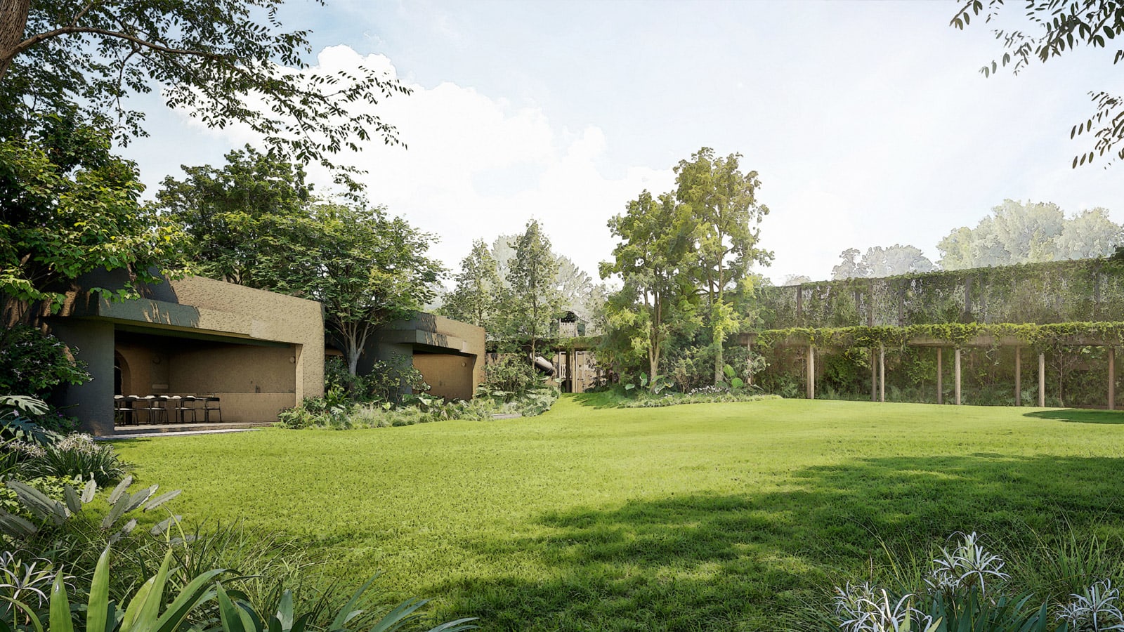 Nature-led design extends throughout the development. “The curve of the pool reflects the natural process of erosion, as if shaped by water over time,” he said. “The Lawn zone is designed to encourage creativity and social interaction, where residents of all ages can gather and connect.”