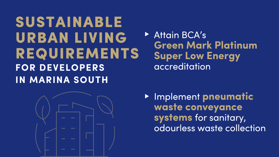 The use of carbon-efficient, smart building technologies further establishes Marina South as an eco-district. All developments here must achieve the Building and Construction Authority’s (BCA) Green Mark Platinum Super Low Energy certification. Plus, the adoption of centralised cooling and energy monitoring systems within developments will improve efficiency and reduce the district’s carbon footprint in the long term.