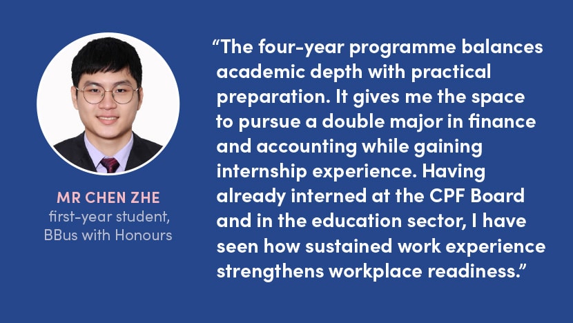While some may prefer to enter the workforce earlier, Mr Chong sees value in using the extra year to build depth through internships, leadership roles and overseas exposure. He views the fourth year as an investment in deeper expertise, expanded leadership experience and international opportunities.