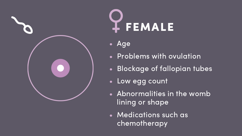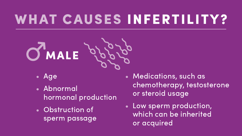 Causes of infertility are split between men and women, with age being a key factor. The quantity and quality of a man’s sperm decreases as he gets older, particularly beyond the age of 40. Likewise, the number and quality of eggs in women decline as they age.
