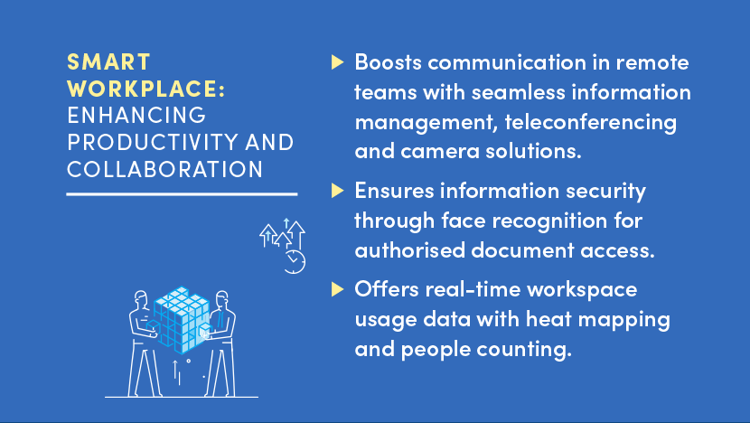 Smart Workplace provides tools for remote work, collaboration and communication, ensuring that businesses stay productive even during crises. It includes information management solutions that streamline the flow of documents and data across an organisation.