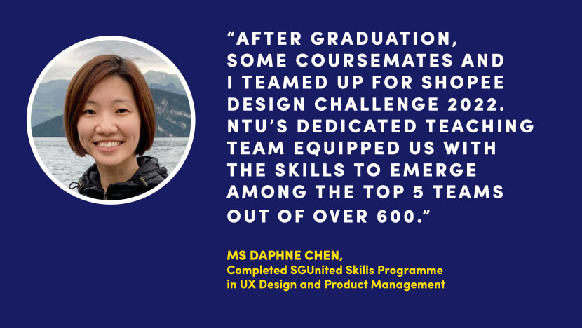One learner, Mrs Kartini, sought to acquire new skills in technology after 10 years in the hospitality sector, including a role as a polytechnic lecturer in her home country of Indonesia. “Transitioning to digital is a good choice as we live in an era of high technology. As I enjoy art, I decided to explore my career as a UX (user experience) designer and signed up for NTU’s SGUS Programme in UX Design and Product Management,” she says.