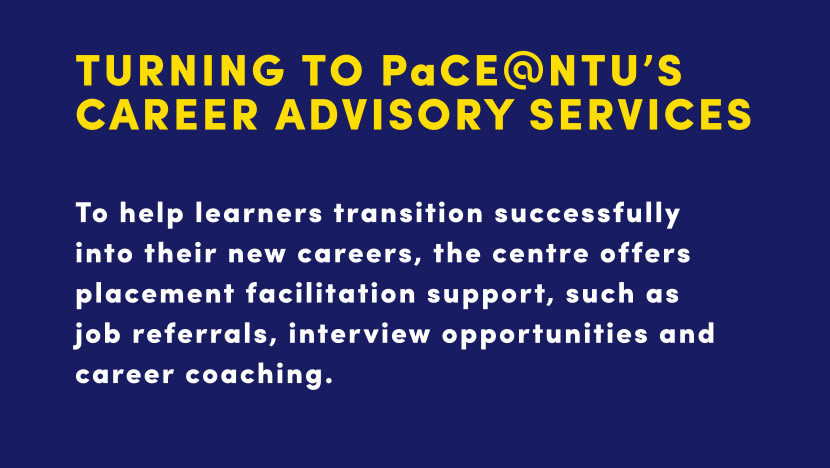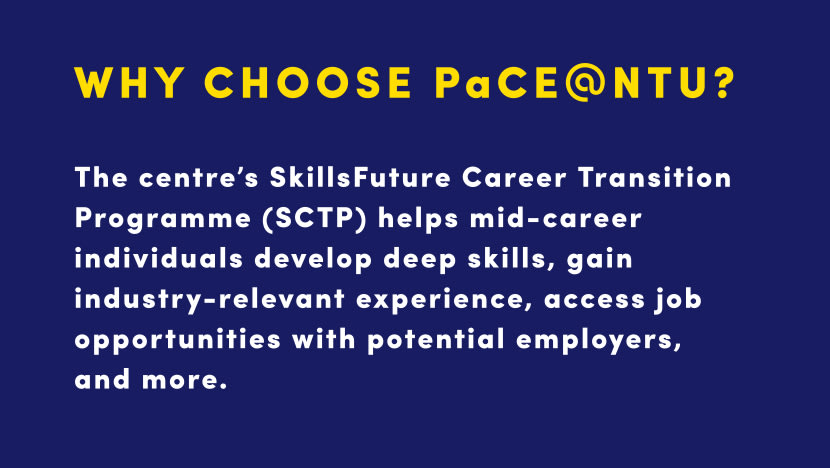 Perhaps the biggest strength of enrolling in the SCTP at PaCE@NTU is leveraging its team of career consultants, who provide learners with ongoing support and guidance. As learners transition into their new careers, they can tap on various career services and activities, such as career coaching, insight sessions from industry practitioners, employability workshops on the latest job-search know-how, and personal guidance from the dedicated consultants.