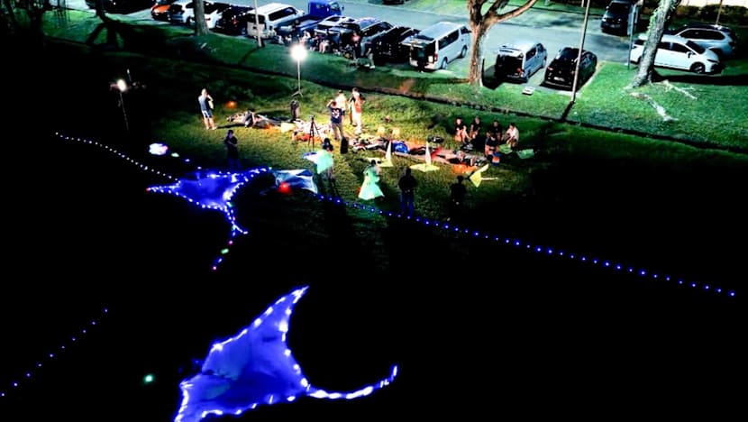 The hobby has been around since 2002, with LED kite displays featuring at events like the National Day Parade 2007. The group gathers about once a month, turning a field in Upper Thomson Road into a venue for a light show.