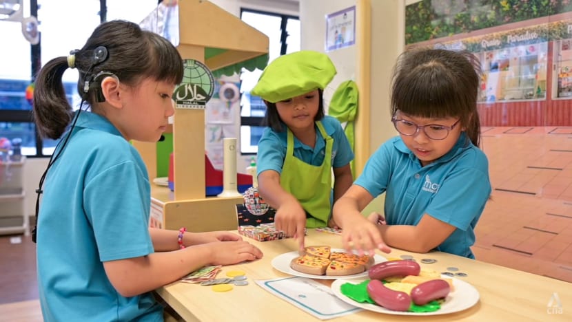 SINGAPORE: Their giggles rang out round the classroom as the three girls raced to the play kitchen to assemble miniature hot dogs and pizzas.