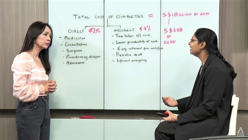 The indirect cost of diabetes accounted for 58 per cent of the total cost of S$1 billion in 2010. By 2050, the total could balloon to S$2.5 billion.