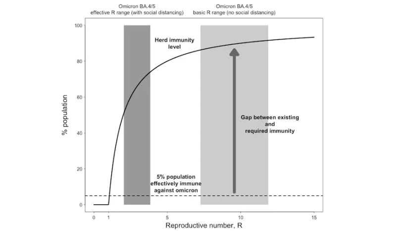 For such public health policies to be successful, mass vaccination needs to reach a high proportion of the population. Sublineages of the omicron variant BA.5 are currently dominant in China. Omicron has an average R of 9.5, so around 90 per cent of the population needs to be fully protected to reach herd immunity, according to the model.