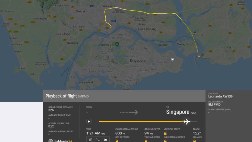 At that speed, the helicopter would have only taken some 4 minutes to reach Singapore airspace from the start of its journey.