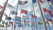 European flags fly outside the European Parliament, Tuesday, Feb 15, 2022 in Strasbourg, eastern France. (Photo: AP/Jean-Francois Badias)