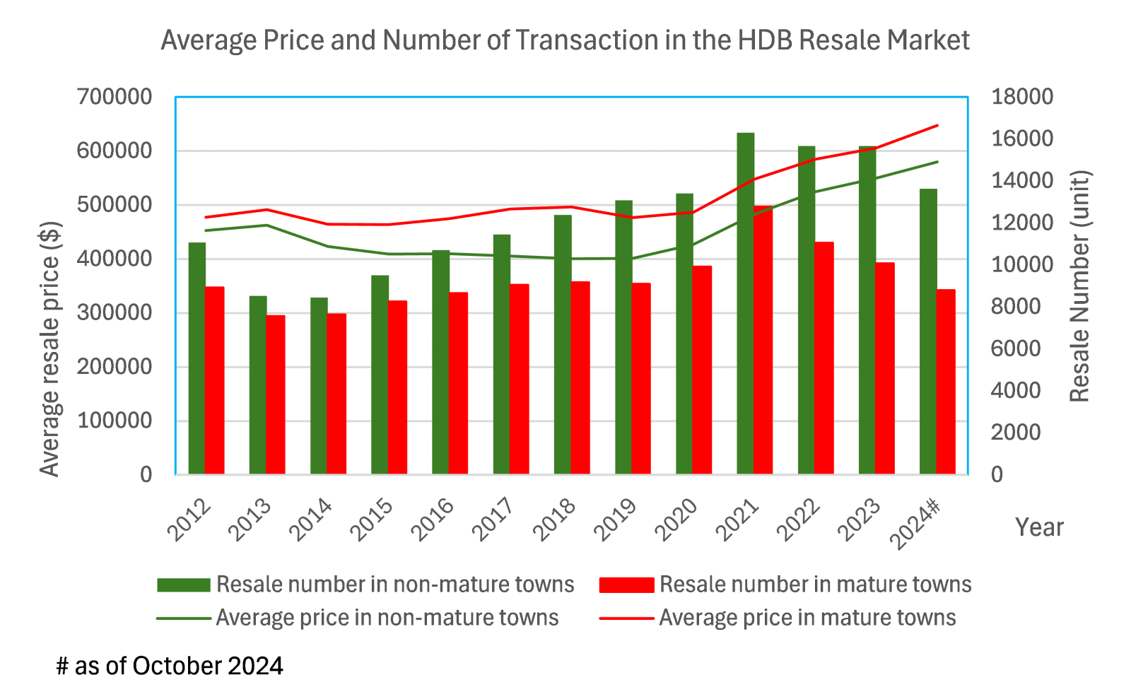 Non-mature towns also accounted for a larger volume of resale transactions compared to mature towns, although average resale prices in those locations tended to trend behind those in the mature estates.