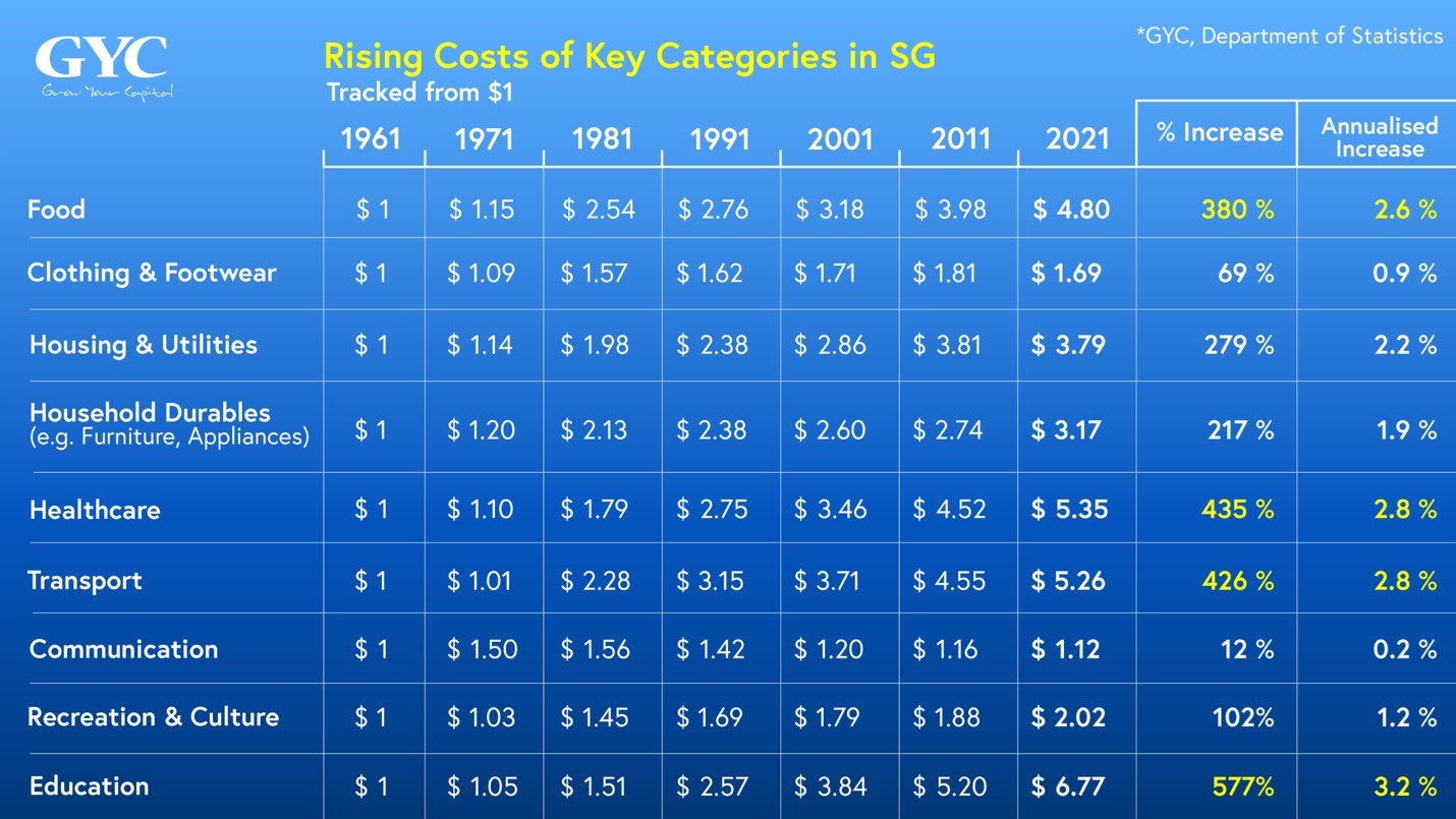 It was not too long ago that Singaporeans had a rather apathetic attitude towards inflation but now, inflation has risen as a major topic of worry. What type of price increases can one expect over the long term? How does inflation mess with retirement? And how does one invest to keep up with rising prices?