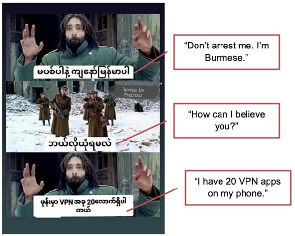 Equating Burmese identity with 20 VPN applications is, of course, said in jest, but the real-world number is still high. Digital rights activists estimate that Myanmar citizens have an average of 5 VPN applications installed on their phones.