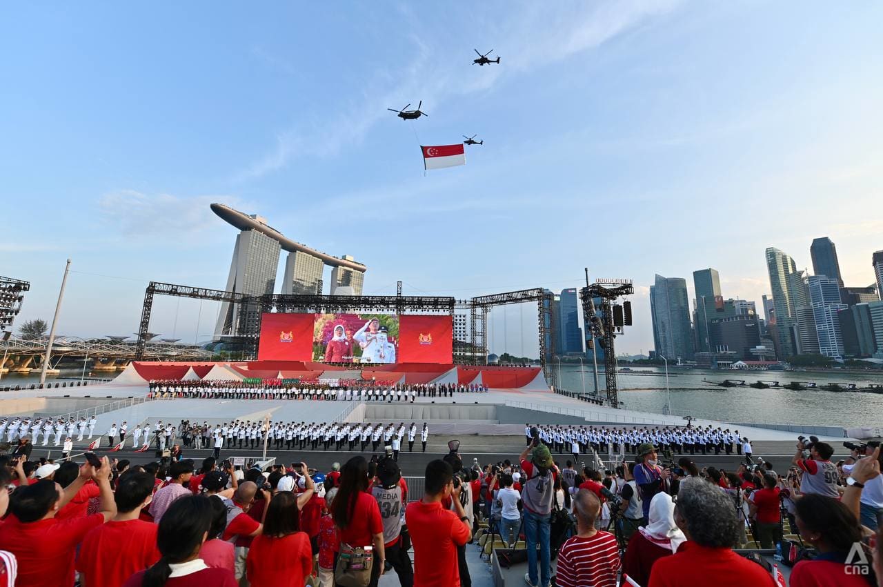 But the flag flypast is without doubt the heart-stopper. All eyes follow the state flag as it moves slowly across the Marina Bay and voices unite in singing the National Anthem.