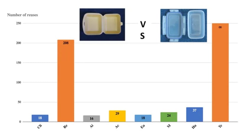 Our research set out to understand how many times you have to reuse a container for it to be the more eco-friendly choice, in the context of the takeaway food industry.