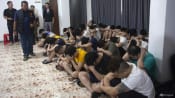 Multinational victims of scam centres, who were trafficked into working in Myanmar and were sent to Thailand on Feb 12, 2025, amid a mounting crackdown on scam centres operating along a porous border, queue to get food at a shelter inside the 310th Military District (Fort Wachiraprakan) in Tak province, Thailand, on Feb 19, 2025. (File photo: Reuters/Chalinee Thirasupa)
