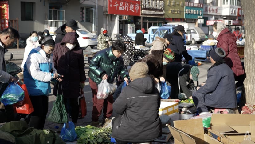 When CNA visited the Fuxin Power Plant Morning Market, around three dozen stalls lined the area, offering essentials ranging from fresh meat to pickles.