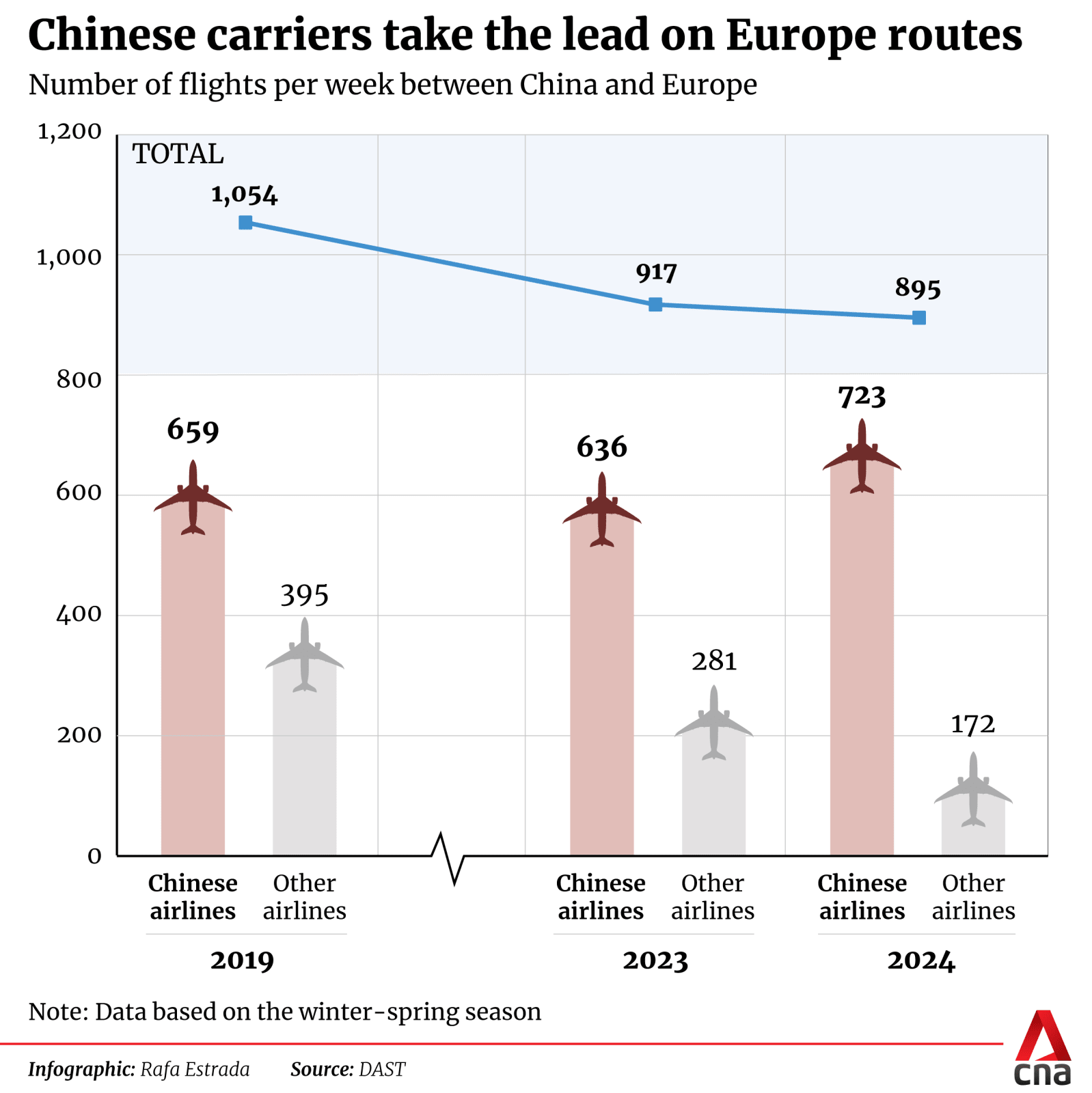 Meanwhile, Chinese airlines are significantly boosting their capacity on China-Europe routes.